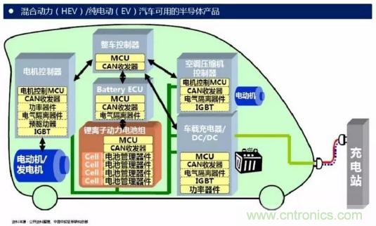IGBT模塊在電動汽車中發(fā)揮著至關重要的作用,是電動汽車及充電樁等設備的核心技術部件。IGBT模塊占電動汽車成本將近10%,占充電樁成本約20%。IGBT主要應用于電動汽車領域中以下幾個方面: