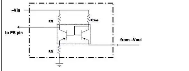 通過以與感測和放大差分電壓時使用的配置非常相似的配置連接運算放大器,可以將其用于負(fù)降壓配置中,以共同按比例縮小輸出電壓。這使得它適合 FB 引腳(從而設(shè)置穩(wěn)壓器的輸出電壓),同時將該電壓的參考從系統(tǒng)接地轉(zhuǎn)移到 -Vin 軌。