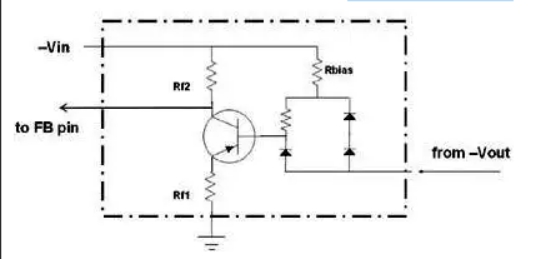 在使用低側(cè) FET 升壓 IC 實現(xiàn)的負(fù)降壓應(yīng)用中,輸出 (-Vout) 及其任何分壓樣本仍然以系統(tǒng)接地為參考。然而,由于 IC 接地引腳連接到 -Vin 而不是系統(tǒng)接地,因此 IC 將無法正確讀取 FB 電壓(也不會正確保持調(diào)節(jié)),因此需要轉(zhuǎn)換該電壓,使其以 IC 接地引腳為參考。