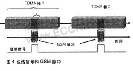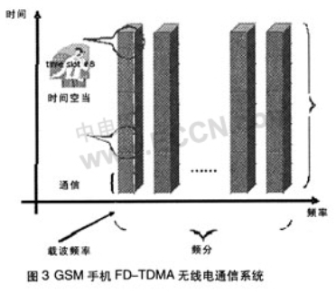 思考當(dāng)今電子世界,到處信號持續(xù)不斷地變化:音頻的輸入/輸出能產(chǎn)生輻射及傳導(dǎo)EMI,然后發(fā)射更高頻率的射頻線,導(dǎo)致信號失真;手機天線(TDMA脈沖)會發(fā)射射頻信號,此信號可被長線頭戴式耳機接收,導(dǎo)致音頻信號通路中EMI噪音;GSM(全球通)手機標準使用頻分多路傳輸和時分多路傳輸,同時傳送大量電話,如圖3所示。