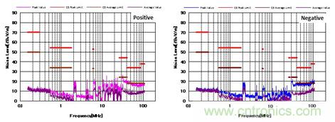 圖8 C5標準下的噪聲特性(帶CM,DM濾波器以及屏蔽罩)
