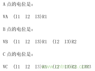 從公式中可以看出,A、B、C各點的電位是受電路工作電流影響的,隨各電路的地線電流而變化。尤其是C點的電位,十分不穩(wěn)定。