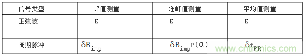 騷擾測(cè)量?jī)x可以進(jìn)行準(zhǔn)峰值測(cè)量、峰值測(cè)量和平均值測(cè)量。當(dāng)輸入信號(hào)是正弦波時(shí),無(wú)論用何種方式測(cè)量,得到的讀數(shù)都是相同的,等于該正弦波的有效值,精度應(yīng)優(yōu)于±2dB。但是如果輸入的是周期脈沖信號(hào),則三種測(cè)量方法得到的讀數(shù)是不一樣的,其結(jié)果如表7所示。