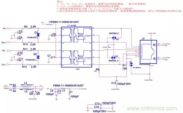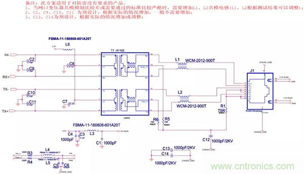 (1)以太網(wǎng)EMC(EMI)設(shè)計(jì)標(biāo)準(zhǔn)電路