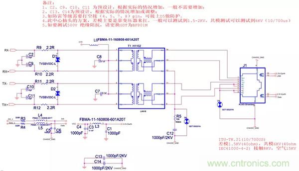 30、以太網(wǎng)EMC(浪涌)設(shè)計(jì)標(biāo)準(zhǔn)電路(差模要求較高方案)