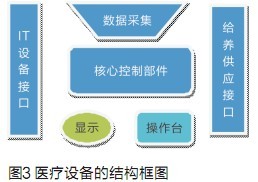 前面談了許多關(guān)于國(guó)內(nèi)嵌入式企業(yè)在發(fā)展醫(yī)療電子產(chǎn)品上的優(yōu)勢(shì),但是,我們必須清醒地看到醫(yī)療電子產(chǎn)品(或者稱為有源的醫(yī)療設(shè)備)設(shè)計(jì)的特殊性。一般來講,醫(yī)療設(shè)備由下面幾個(gè)部分組成:電子控制部分、顯示和操作臺(tái)、給養(yǎng)供應(yīng)和數(shù)據(jù)采集、以及其他設(shè)備接口(包括IT等),如圖3。每個(gè)部分都可能有獨(dú)立的MCU或者ASIC/FPGA,甚至是高性能的嵌入式計(jì)算機(jī)組成的多處理器系統(tǒng)。軟件研發(fā)的費(fèi)用在現(xiàn)代醫(yī)療設(shè)備研發(fā)費(fèi)用中所占的比重已經(jīng)超過50%,未來還會(huì)增加。醫(yī)療設(shè)備的特殊性體現(xiàn)在下面幾個(gè)方面: