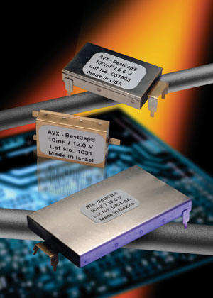 脈沖超級(jí)電容器的封裝也在不斷發(fā)展,主要朝向小占板面積和低高度方向。例如,AVX的BestCap®系列超級(jí)電容器大約8年前就面市了,包括了具有標(biāo)準(zhǔn)28mm×17mm尺寸和48mm×30mm大尺寸的型號(hào),厚度范圍是2.0mm~6.0mm。目前,已經(jīng)開發(fā)出了小尺寸(20mm×15mm)的型號(hào),更加微小尺寸(15mm×12mm)的型號(hào)也正在開發(fā)中(見圖1)。這些超級(jí)電容的結(jié)構(gòu)是非常堅(jiān)固的,具有精密鋼質(zhì)外殼。所有內(nèi)部單元部件都采用環(huán)保材料、無有機(jī)溶劑的水溶性材料制造,這些相同的單元部件會(huì)構(gòu)成單元陣列。由于采用實(shí)體封裝和相同的結(jié)構(gòu),可以承受超過1000g的重力加速度沖擊,而且這些內(nèi)部單元的工作溫度范圍是-40~+75℃。