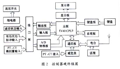 系統的終端控制器具有兩路單獨的PT、CT輸入,可以同時監(jiān)控兩路母線的用電,裝有一臺CRT顯示器,可以將監(jiān)控數據以圖形方式顯示出來,由于顯示數據較多,故通過鍵盤選擇需要查看的數據。
