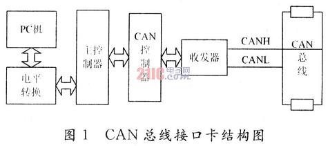 前者具有傳輸速度快的特點(diǎn),但卻要占用一個(gè)計(jì)算機(jī)的插槽,并且設(shè)計(jì)上十分困難;后者的傳輸速度也很快,且價(jià)格較便宜,但要花費(fèi)很大的精力進(jìn)行USB的固件開發(fā)和維護(hù),并要編寫復(fù)雜的驅(qū)動(dòng)程序。根據(jù)此,需要設(shè)計(jì)一種能夠方便讀取CAN總線數(shù)據(jù),并通過RS232串行口將數(shù)據(jù)送給PC機(jī)處理和顯示的接口卡;此外還需對其串行傳輸?shù)膮f(xié)議進(jìn)行加強(qiáng),以使能有效地降低傳輸過程中出現(xiàn)的錯(cuò)誤。