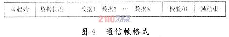 單片機(jī)與PC端的數(shù)據(jù)通信需要設(shè)計(jì)一個(gè)通信協(xié)議,采用同步通信方式進(jìn)行。將通信協(xié)議分成命令幀、應(yīng)答幀和數(shù)據(jù)幀三種格式。每種幀都包含有起始字節(jié)、數(shù)據(jù)長度、校驗(yàn)字節(jié)和幀結(jié)束字節(jié)。具體格式如圖4所示。