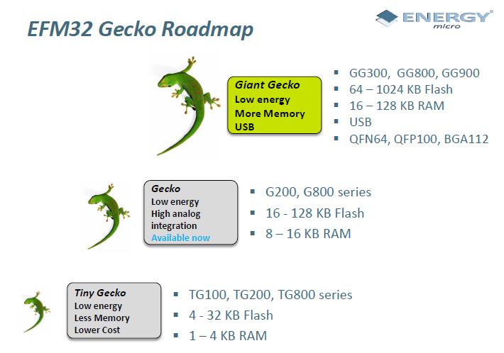 - 新的Giant Gecko系列提供更大的Flash閃存,部分產品提供USB外設