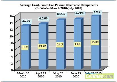 在第二季度,交貨時(shí)間被拉長(zhǎng),我們還密切關(guān)注了原材料的價(jià)格。7月份出現(xiàn)了一次無(wú)征兆的跳躍,交貨時(shí)間在過(guò)去30天里再一次延長(zhǎng)了6.9%,其中鉭電容器的交貨時(shí)間增加最為明顯,而MLCC的交付時(shí)間則縮短了,因?yàn)轫n國(guó)和日本差不多在同一時(shí)間開(kāi)始供貨(圖1.1)