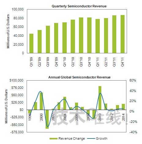iSuppli從正面否定了對于此次快速增長所擔(dān)心的“泡沫”和“二次探底”。關(guān)于泡沫問題,有觀點認為,此前曾創(chuàng)下歷史最高增長率的2000年出現(xiàn)了需求泡沫,所以此次的增長會不會也是泡沫。但是,iSuppli指出,2000年的增長是繼1999年經(jīng)濟繁榮之后的產(chǎn)物,而此次增長的背景卻是經(jīng)濟形勢從2009年以前的經(jīng)濟低迷期開始的復(fù)蘇,因此這兩種情況“在循環(huán)本質(zhì)上完全不同”。關(guān)于二次探底,iSuppli高級副總裁戴利·福特(Dale Ford)表示,“我不同意二次探底將要到來的觀點”。他認為,從2010年下半年開始,2010年半導(dǎo)體市場將恢復(fù)到通常模式。也就是說,2010年第二季度將環(huán)比增加8.2%,達到峰值,第三季度將環(huán)比增加6.7%、第四季度將環(huán)比增加0.4%,出現(xiàn)減速,進入2011年后,由于通常的季節(jié)因素,將轉(zhuǎn)為環(huán)比負增長。iSuppli預(yù)測,回到這種標準增長模式后,2011年的半導(dǎo)體市場將增長7%。