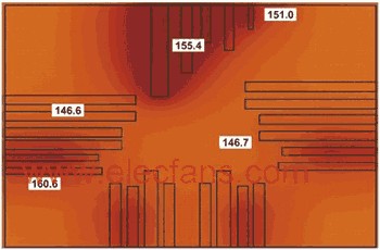 每一個FET的尺寸和縱橫比,對熱分布都非常重要。需要考慮的另一個重要因素是FET是否同時或順序上電。模型精度取決于所使用的物理數(shù)據(jù)和材料屬性。