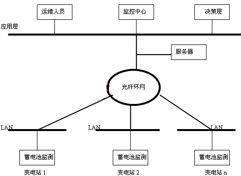 蓄電池在線監(jiān)測還可以利用通訊手段進行網(wǎng)絡(luò)化管理(如圖4),將幾個站或一地區(qū)的蓄電池監(jiān)測通過光纖進行組網(wǎng),建立一個實時遠程智能化蓄電池監(jiān)測網(wǎng)絡(luò)化管理系統(tǒng),以實現(xiàn)信息集中和遠程控制,使運行檢修人員、相關(guān)人員和管理決策層能夠通過局域網(wǎng)內(nèi)的任何一個終端用IE瀏覽的方式即可實時掌握各變電站蓄電池的運行情況及其性能變化趨勢,使蓄電池得到及時的維護,同時也為“設(shè)備狀態(tài)檢修”提供可靠依據(jù),將“定期維護檢修”轉(zhuǎn)變?yōu)?ldquo;狀態(tài)檢修”,從而實現(xiàn)對蓄電池的科學(xué)化管理,保證系統(tǒng)的可靠、安全運行。