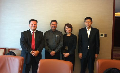 照片說明:(從左到右)Mark Burr-Lonnon( Mouser歐亞區(qū)副總裁), Conrad Fernandes(LeCroy公司亞太區(qū)副總裁),Daphne( Mouser 亞太區(qū)市場與業(yè)務拓展總監(jiān)),管立虹(LeCroy公司亞太區(qū)目錄銷售經(jīng)理)