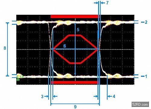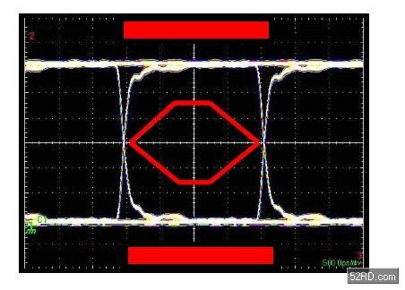 通過在示波器的垂直軸對數字信號進行反復采樣、同時采用相應數據率對水平時間掃描進行觸發(fā)來生成眼圖。所獲得的圖形看上去象眼睛,如圖1所示。“眼睛”越大,數據完整性越高。通常采用模板(mask)來對可接受的信號質量進行定義。這模板由“眼睛”中間的六角形和“眼睛”上、下的矩陣組成。如果測得的信號跡線穿越模板的邊線,那么信號質量就不可接受。USB2.0信號模板規(guī)范由USB應用者論壇(USBIF,www.usb.org)提供,可參見USB2.0版規(guī)范第7.1.2.2章節(jié)。圖1中顯示了帶有詳細臨界點的眼圖。
