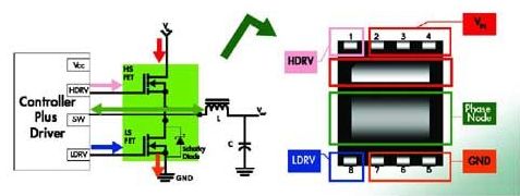 1.帶驅(qū)動器和MOSFET的分立式解決方案現(xiàn)在仍在普遍使用。為滿足所有設(shè)計(jì)要求,現(xiàn)在飛兆半導(dǎo)體提供的采用小尺寸熱性能增強(qiáng)型MLP(QFN) 封裝的產(chǎn)品,可獲得高系統(tǒng)性能。MOSFET實(shí)現(xiàn)了首先采用MLP封裝(見圖3所示)。其Power56和Power33產(chǎn)品系列采用最新的PowerTrench技術(shù),能夠同時提供超低RDSon 和低Qg,從而適用于高開關(guān)頻率應(yīng)用。鍵合技術(shù)可減小封裝的電感 ,提高封裝有限的ID ,適用于大電流應(yīng)用。其低端FET產(chǎn)品組合采用SyncFET集成了肖特基二極管 ,在實(shí)現(xiàn)高開關(guān)性能的同時降低了熱耗。