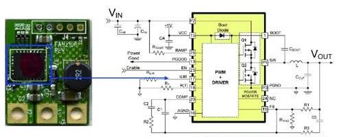2.上述帶驅(qū)動器和MOSFET的分立式解決方案也備有8x8mm或6x6mm MLP封裝的MCM(多芯片 模塊)。這些DrMOS(DriverMOS)產(chǎn)品系列包括 8x8mm產(chǎn)品FDMD87xx和6x6mm產(chǎn)品FDMF67xx,可滿足不同的設(shè)計(jì)要求。而評估板則可協(xié)助設(shè)計(jì)人員熟悉應(yīng)用,并測試性能以便與分立式解決方案相比較(圖5)。