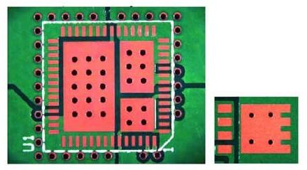 至于版圖布局,金屬較多顯然很有助益。更厚的頂層有助于降低溫度,不過也許對PCB的其余部分并不適合,因?yàn)槌杀驹黾恿?其它元件需要的更精細(xì)的間距也不可能實(shí)現(xiàn)。更大的銅面積很有用,但又會消耗PCB空間。這些應(yīng)該盡可能由焊料覆蓋,因?yàn)榻饘俦砻姹韧科岜砻娴纳嵝愿?。在多層PCB中,有時利用內(nèi)層來協(xié)助散熱。熱通孔 (填充焊料) 有時可用來把熱量擴(kuò)散到PCB的另一面去 (圖9)。