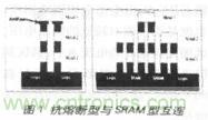 Actel 公司的抗熔斷型FPGA是用先進的CMOS工藝制作的,內(nèi)部采用專利的金屬-金屬抗熔斷元件。抗熔斷互連就象純金屬互連一樣,而與用晶體管開關(guān)的SRAM 互連截然不同??谷蹟嘟Y(jié)構(gòu)消除了CRAM互連開關(guān)中圖騰柱結(jié)構(gòu)的功耗,并且縮小了器件的尺寸,使全部連線資源都位于硅片的頂部。這種結(jié)構(gòu)可以更形象地用掩 埋在金屬層上的“模塊海洋”來描述,極大地減少了芯片的尺寸以及開關(guān)的電阻與電容,從而降低了功耗(圖1)。
