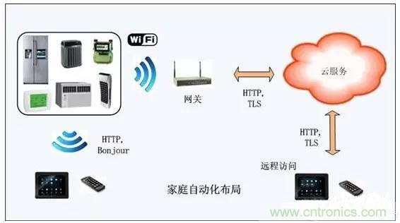 從上圖可看出,家庭自動(dòng)化系統(tǒng)將嵌入式微控制器技術(shù)、無線連接、接入網(wǎng)絡(luò)融合為一體。Apps軟件能夠使用戶發(fā)現(xiàn)家里的設(shè)備,予以設(shè)置,或者創(chuàng)建一個(gè)動(dòng)作加以控制。