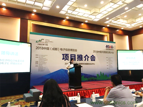 2018年5月24日下午, 2018中國(成都)電子信息博覽會暨2018中國大數(shù)據(jù)應(yīng)用大會在成都世紀(jì)城國際會議中心召開項目推介會。活動由中電會展與信息傳播有限公司總經(jīng)理宋偉主持,四川省經(jīng)濟(jì)和信息化委員會電子處蘇平處長,成都市經(jīng)濟(jì)和信息化委員會通用電子處副處長鄧敏出席推介會并致辭,中國電子器材總公司總經(jīng)理陳雯海向來賓介紹了2018中國(成都)電子信息博會項目整體情況和2018中國大數(shù)據(jù)應(yīng)用大會項目的相關(guān)進(jìn)展情況,四川省大數(shù)據(jù)產(chǎn)業(yè)聯(lián)合會常務(wù)副秘書長朱小軍,代表合作伙伴在推介會上進(jìn)行了發(fā)言,四川省其他30家相關(guān)學(xué)協(xié)會等也參加了本次活動。另外,現(xiàn)場還有超過50家媒體及100家成都及四川地區(qū)電子信息產(chǎn)業(yè)相關(guān)企業(yè)及組織出席項目推介會。