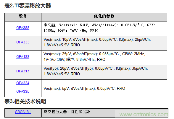 下面的表2重點(diǎn)介紹了TI的一些零漂移放大器。有關(guān)完整列表,請點(diǎn)擊查看德州儀器的參數(shù)搜索工具結(jié)果。