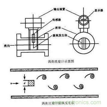 渦街流量計(jì)是在流體中安放一根非流線型游渦發(fā)生體,流體在發(fā)生體兩側(cè)交替地分離釋放出兩串規(guī)則地交錯(cuò)排列的游渦的儀表。渦街流量計(jì)按頻率檢出方式可分為:應(yīng)力式、應(yīng)變式、電容式、熱敏式、振動(dòng)體式、光電式及超聲式等。
