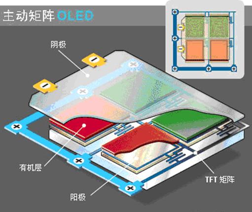 與TFT-LCD類似,OLED也可以做成“TFT-OLED”,以提高OLED的瞬態(tài)響應性能,不過“TFT-OLED”人們卻用另一個名字來稱謂,它被稱為主動矩陣OLED (Active Matrix/Organic Light Emitting Diode,簡稱AM-OLED),如圖10所示。