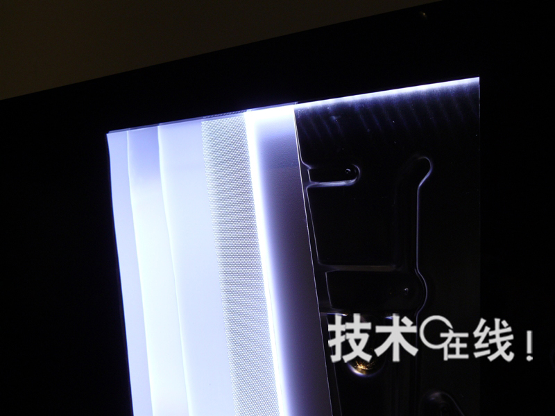 EX700系列雖然為調(diào)諧器內(nèi)置機(jī)型,但最薄部分只有22mm。這是通過采用白色LED作為背照燈光源,并將其配置在面板上下兩邊的邊緣而實(shí)現(xiàn)的。配備的白色LED數(shù)量“不便透露”(索尼)。