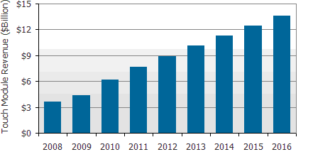 - DisplaySearch估計(jì)2016年觸控面板市場將成長到140億美元