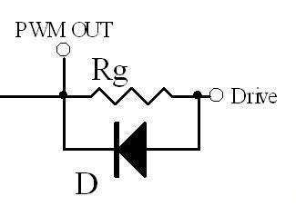 以上討論的是MOSFET ON狀態(tài)時電阻的選擇,在MOSFET OFF狀態(tài)時為了保證柵極電荷快速瀉放,此時阻值要盡量小.通常為了保證快速瀉放,在Rg上可以并聯(lián)一個二極管.當瀉放電阻過小,由于走線電感的原因也會引起諧振(因此有些應用中也會在這個二極管上串一個小電阻),但是由于二極管的反向電流不導通,此時Rg又參與反向諧振回路,因此可以抑制反向諧振的尖峰.這個二極管通常使用高頻小信號管1N4148.