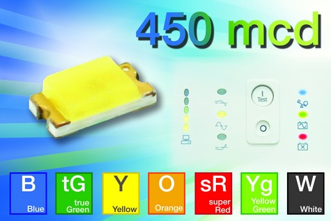 VLMx1300系列中的所有LED都安裝在1.6 mm x 0.8 mm x 0.55 mm的高可靠PCB板上,具有130°的極寬視角。顏色包括大紅、淺橙色、黃色、黃綠色、純綠色、藍色和白色。這些彩色LED使用超亮的AllnGaP和InGaN技術(根據(jù)顏色采用不同的技術),在20mA正向電流和最高3.8V的正向電壓下,發(fā)光強度高達450mcd。藍色LED具有一個ESD防護能力高達8000V的保護二極管。在5mA正向電流和3.15V的最高正向電壓下,白色LED的最高發(fā)光強度達180mcd。下表列出了各個型號的性能特性。