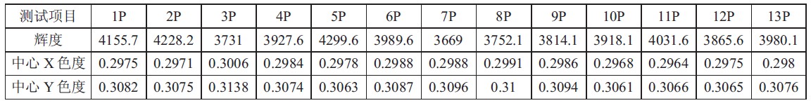 表1 LED 背光源的光學(xué)測試數(shù)據(jù)