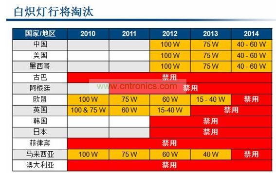Power Integrations產(chǎn)品營銷經(jīng)理Andrew Smith道:“所有的國家都是先從大功率的100W白熾燈開始淘汰,接下來才是75W等小功率的白熾燈。歐盟在2010年就淘汰了100W白熾燈,美國、中國等則是在2012年開始淘汰。所以市場上對于能替換100W白熾燈的大功率LED是有非常強勁的市場需求的。”