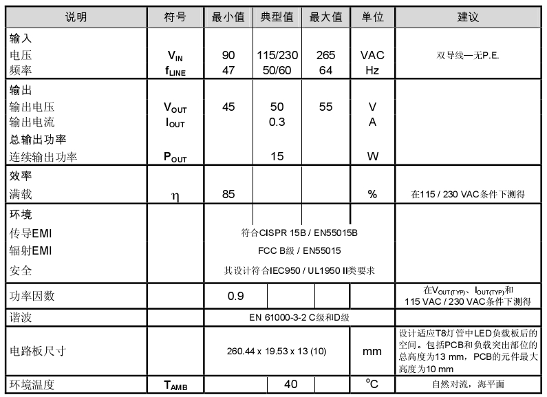 本文檔介紹的是一款功率因數(shù)校正LED驅(qū)動(dòng)器,它可以在90 VAC至265 VAC的輸入電壓范圍內(nèi)為L(zhǎng)ED燈串提供額定電壓50 V、額定電流0.3 A的驅(qū)動(dòng)。該LED驅(qū)動(dòng)器采用了PowerIntegrations的LinkSwitch-PH系列IC中的LNK406EG器件。