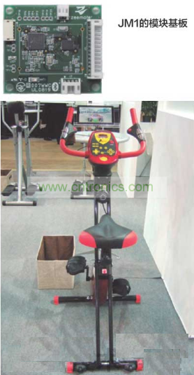 安裝了Aplix開發(fā)的通信模塊“JM1”的訓(xùn)練機(jī)。是該公司用于演示的試制品。訓(xùn)練機(jī)的動作數(shù)據(jù)將發(fā)送到智能手機(jī)和平板終端,實現(xiàn)了與Web服務(wù)等聯(lián)動的功能。