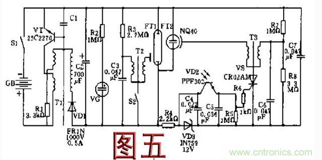 圖四所示電路的工作原理與圖3類似。自動調(diào)光閃光燈電路采用自動調(diào)光的閃光燈,可根據(jù)被攝物體所受光照的強(qiáng)弱,自動確定燈閃時間的長短,來得到正確的閃光曝光量。