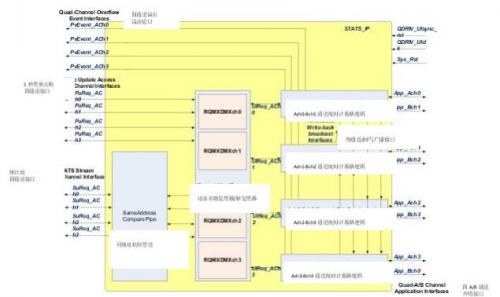 正如模塊圖所示,NPU通過4x25Gbps鏈路將統(tǒng)計和處理請求推送到IP中。IP的運行頻率為存儲器存取頻率的四分之一,并且使用四條被稱為“通道”的平行數(shù)據(jù)路徑以匹配存儲器帶寬。在存儲接口HP和XP運行模式中,端口A作為讀取端口,端口B作為寫入端口。每項統(tǒng)計請求對保存在與該請求相關(guān)的獨特存儲位置中的計數(shù)器數(shù)據(jù)進(jìn)行讀—修改—寫操作。