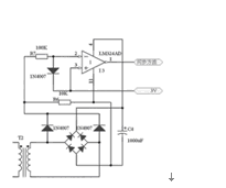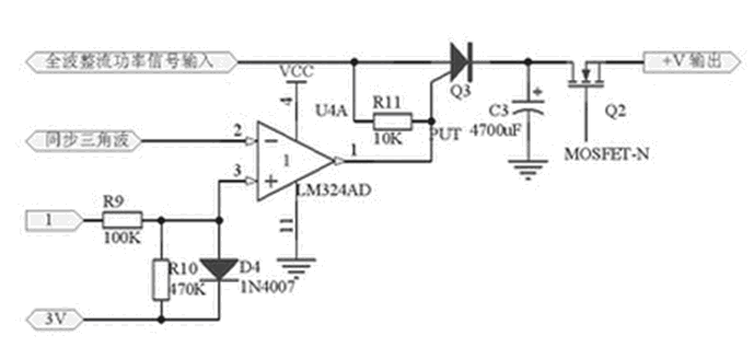 可控硅輸入端的全波電壓低于C3電容電壓的時(shí)候,由于維持電流消失,可控硅自動關(guān)斷。待下一個(gè)延時(shí)方波信號到達(dá)時(shí),再重新導(dǎo)通。從而使調(diào)整管漏極(集電極)電壓的平均值始終保持在比源極(發(fā)射極)電壓高3V的水平。如電源輸出為+5V時(shí),調(diào)整管輸入極就高位跟蹤到8V。