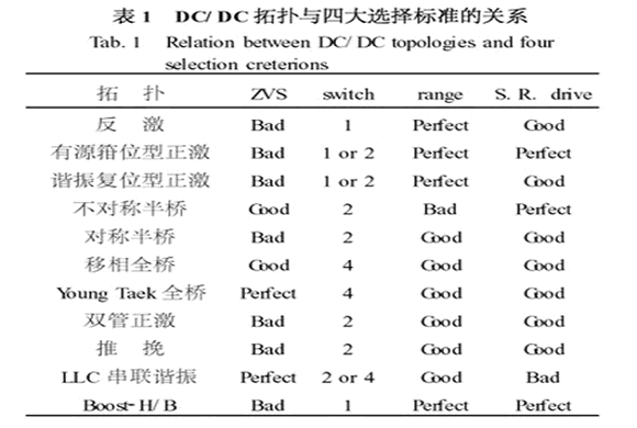 低電壓輸出,所以需要采用同步整流技術(shù)。 變化范圍非常寬。 查看表2 ,發(fā)現(xiàn)反激、有源箝位型正激、諧振復(fù)位型正激、對(duì)稱半橋、雙管正激、推挽式變換器、Boost-H/B是合適的候選拓?fù)洹?因?yàn)槭堑蛪狠斎霙](méi)有ZVS 的限制,拓?fù)涞倪x用就自由很多。 從現(xiàn)有的產(chǎn)品來(lái)看以上的幾種DC/DC 拓?fù)涠加胁捎谩?由表1可知,最適用的拓?fù)涫怯性大槲恍驼?、諧振復(fù)位型正激、Boost-H/B。