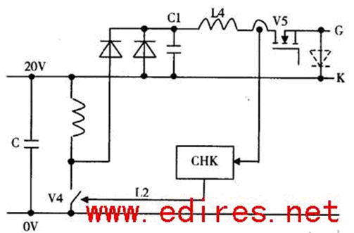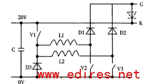 IGCT開通之后陽極電流不會馬上流通。在電流源逆變器中二極管的關(guān)斷有時會延遲電流換向進入工作中的IGCT。開通脈沖的第二部分設(shè)計符合換向的要求。開通脈沖產(chǎn)生之前先斷開圖4中的開關(guān)V6。