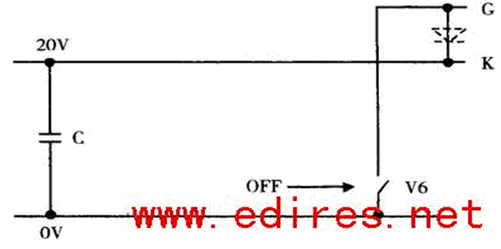 硬驅(qū)動關(guān)斷如圖4所示電路,當(dāng)將V6 開通時,電容C 對門極反向放電,將IGCT關(guān)斷。由于電路的極低電感(5 到15nH 取決于IGCT 的型號)和大電容器組,IGCT對門2陰極端的電磁噪音不敏感。與IGCT相比較,傳統(tǒng)的GTO驅(qū)動裝置大約有200 nH的電感和更小的電容器組。