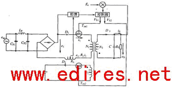 由上面的分析和測量可見,采用兩輸入的DC/DC變換器的好處。它既抑制輸入電流的高頻分量,降低輸出電壓e0的紋波,又提高了功率因數(shù)。因此,使整個(gè)變換器的性能得到令人滿意的改善。如果采用多于兩個(gè)輸入(如三輸入以上),可推想在抑制高頻分量和降低e0紋波方面會(huì)有更好的效果。但是,其控制部分的參數(shù)必須經(jīng)過優(yōu)化。