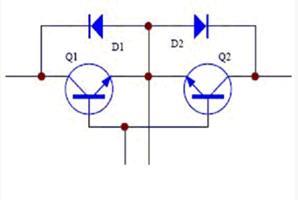 旁路開關(guān)常使用繼電器和可控硅。繼電器在中小功率的UPS 中廣泛應(yīng)用。優(yōu)點(diǎn)是控制簡單,成本低,缺點(diǎn)是繼電器有轉(zhuǎn)換時間,還有就是機(jī)電器件的壽命問題??煽毓璩R娪谥写蠊β蔝PS 中。優(yōu)點(diǎn)是控制電流大,沒有切換時間。但缺點(diǎn)就是控制復(fù)雜,且由于可控硅的觸發(fā)工作特性,在觸發(fā)導(dǎo)通后要在反向偏置后才能關(guān)斷,這樣就會產(chǎn)生一個最大10ms的環(huán)流電流,如圖2。如果采用IGBT,如圖3,則可以避免這個問題,使用IGBT 有控制簡單的優(yōu)點(diǎn),但成本較高。其工作原理為:當(dāng)輸入為正半周時,電流流經(jīng)Q1、D2,負(fù)半周時電流流經(jīng)D1、Q2。