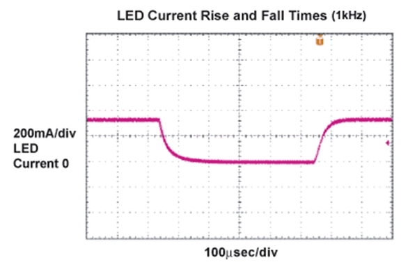 - 通過(guò)低頻PWM脈沖調(diào)制LED電流,控制LED燈源亮度
