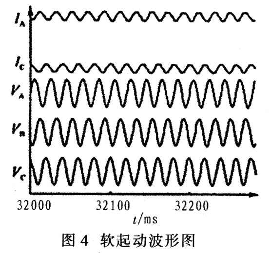 通過對比驗證看出,用軟起動效果遠(yuǎn)好于常規(guī)起動,雖然在起動過程中,起動電流中含有一定的高次諧波,而電壓中卻只有很小的高次諧波,電壓的總諧波畸變率為2.72%,如見圖4所示,所以并不會對系統(tǒng)造成影響。