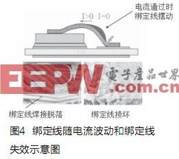 通常,逆變器設(shè)計(jì)主要考慮IGBTTjmax(最高結(jié)溫)的限制,但在混合動(dòng)力車應(yīng)用中,逆變器較少處于恒定工況,加速、巡航、減速都會帶來電流、電壓的改變,由此帶來的ΔTj(結(jié)溫快速變化)將會更大程度影響IGBT的壽命,IGBT導(dǎo)通電流波動(dòng)時(shí),綁定線也會隨之?dāng)[動(dòng),對綁定線和IGBT芯片連接可靠性有較大的影響,反復(fù)的擺動(dòng)可能導(dǎo)致綁定線壽命的耗盡(EOL,EndofLife),例如綁定線和IGBT芯片焊接脫落、綁定線斷裂等,直接導(dǎo)致IGBT的損壞。