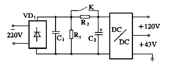 現(xiàn)有的大屏幕彩電內(nèi)用開關(guān)電源一般采用全橋不可控整流電路直接加電解電容濾波電路。圖2 示出該電路形式。